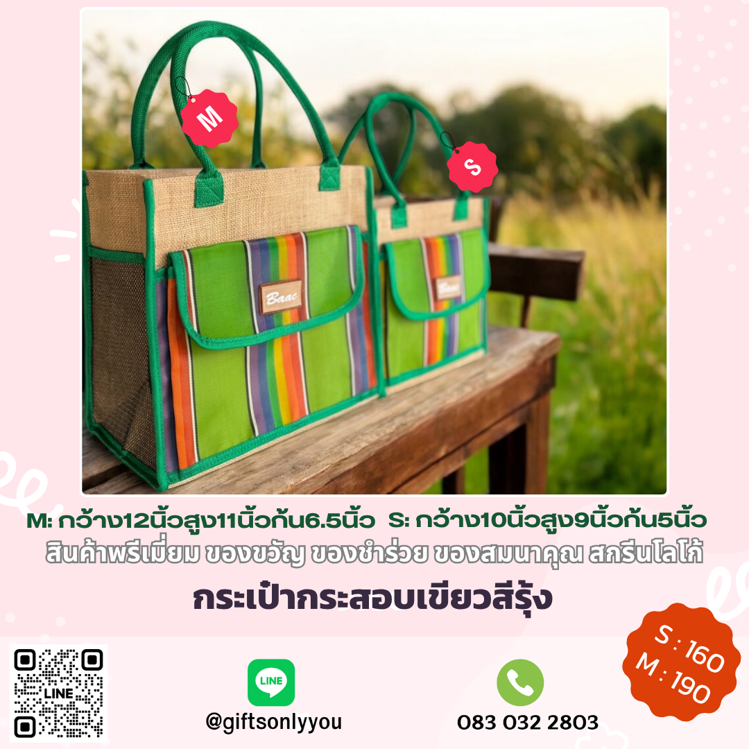 กระเป๋ากระสอบเขียวสีรุ้ง M:ขนาด12*11*6.5นิ้ว L:ขนาด11x9x5นิ้ว