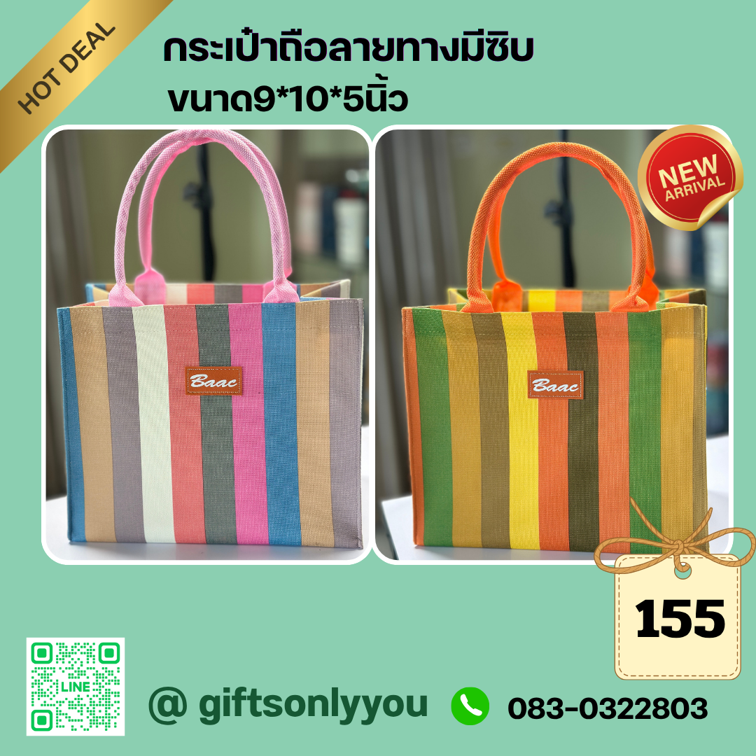 กระเป๋าลายทางมีซิป ขนาด 9x10x5นิ้ว