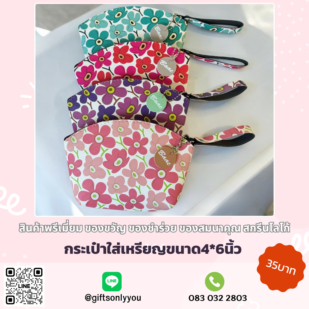 กระเป๋าใส่เหรียญ ลายดอกไม้ทรงแตงโม (คละสี)