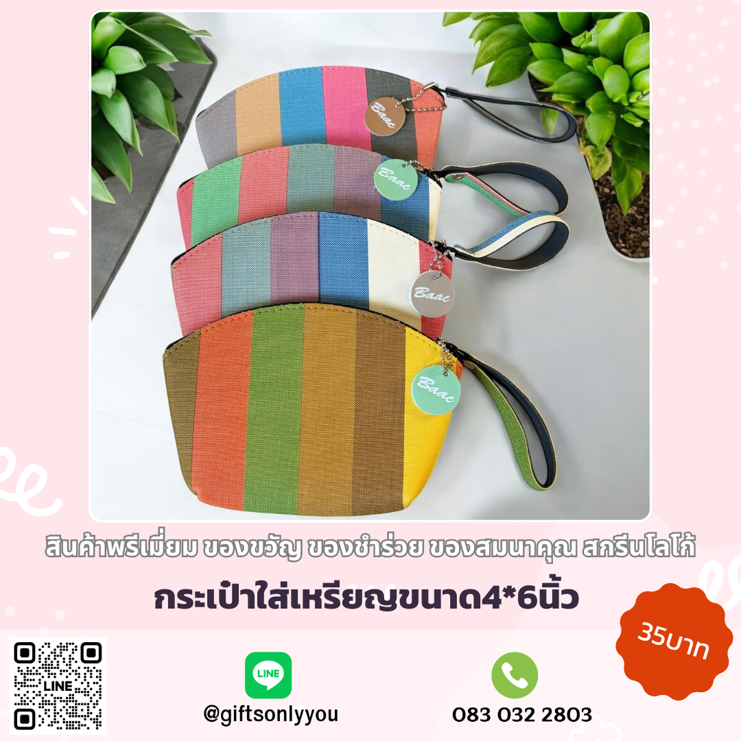 กระเป๋าใส่เหรียญ ลายทางทรงแตงโม (คละสี) ขนาด 4x6 นิ้ว