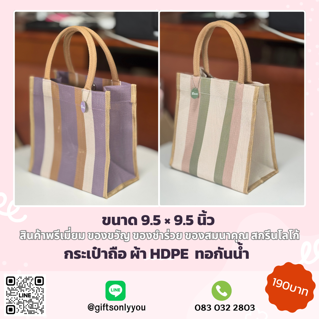 กระเป๋าถือผ้า HDPE 5สี ขนาด 9.5x9.5x4 นิ้ว